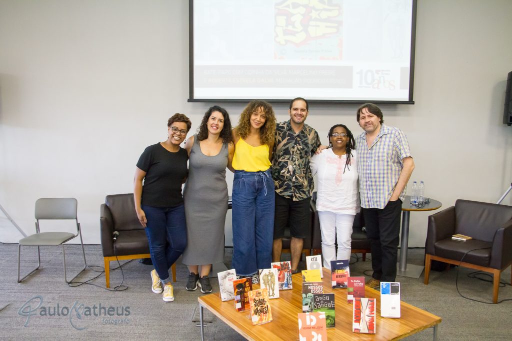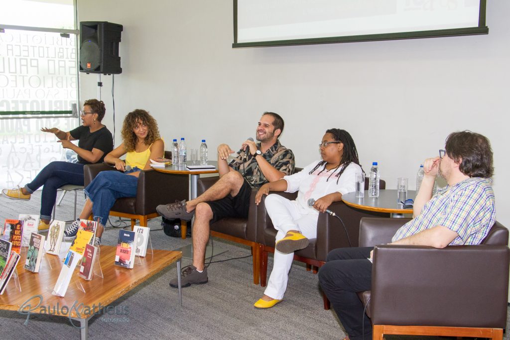 Além disso, no auditório, pude registrar um Bate-papo sobre a literatura brasileira contemporânea com os autores Cidinha da Silva ( http://cidinhadasilva.blogspot.com/ ), Marcelino Freire ( https://www.ebiografia.com/marcelino_freire/ ) e Roberta Estrela D’alva ( https://facebook.com/robertaestreladalva ).