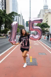 O ensaio é planejado para refletir o estilo da aniversariante, seja romântico, moderno, fashion ou artístico. Assim, criamos imagens únicas que complementam perfeitamente o álbum da festa.